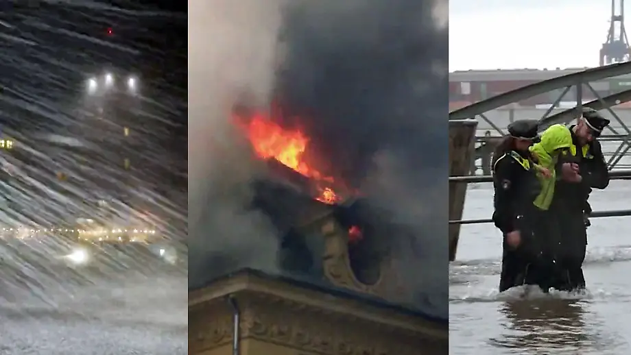 22.10.2021, 09:01 UhrDer erste mächtige Herbststurm verursacht in fast allen Ecken Deutschlands einiges Chaos. Während in Hamburg Wasser den Hafen flutet und es auf dem Fichtelberg schneit, facht der Wind in Potsdam einen Brand an. Auf Straßen und Schienen werden stürzende Bäume zur Gefahr.