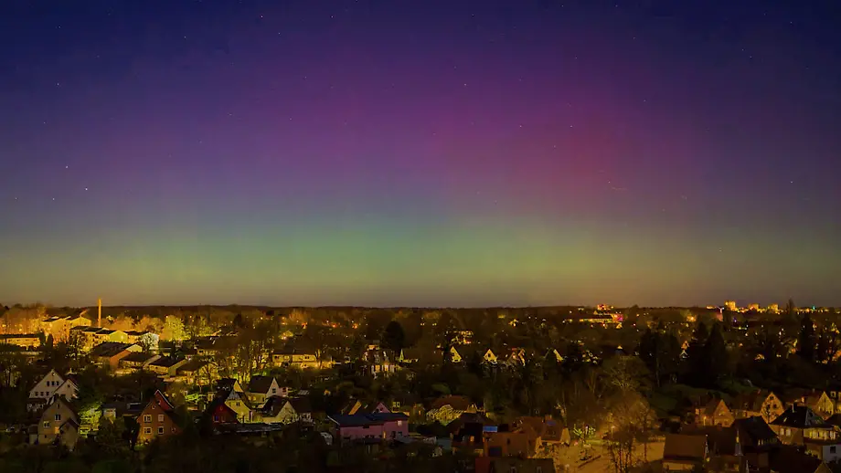 21.12.2021, 14:16 UhrPolarlichter gibt es in Deutschland nur selten zu sehen. Üblicherweise zeigen sich die Nachtlichter nur in den südlichsten und nördlichsten Gebieten der Erde. Ein starker Sonnensturm bringt die Lichtshow nun nach Kiel. Wetter.de-Fotografin Laura Kranich gelingen tolle Aufnahmen des Naturphänomens.