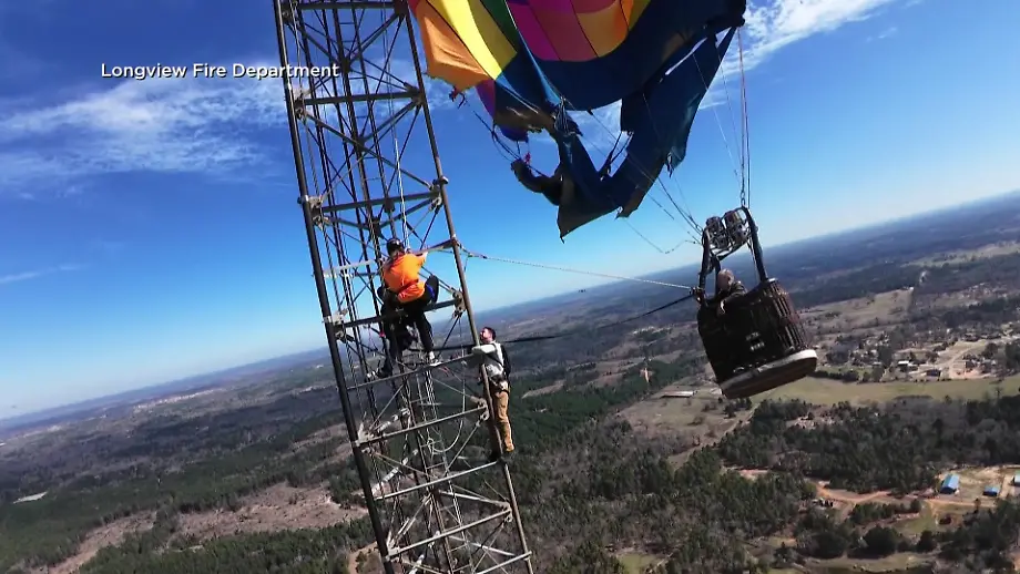 Todesangst über TexasIn 280 Meter Höhe: Heißluftballon hängt in Fetzen an Mast