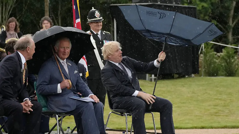 Gegenwind fürs StaatsoberhauptJohnsons Schirm-Panne amüsiert Prinz königlich