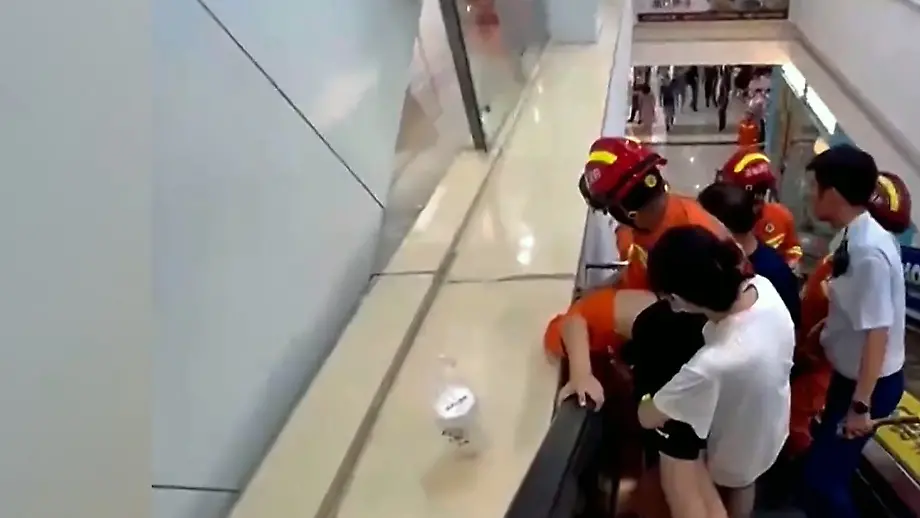 Kaum zu glauben, aber wahrJunge klemmt Kopf zwischen Wand und Rolltreppe ein