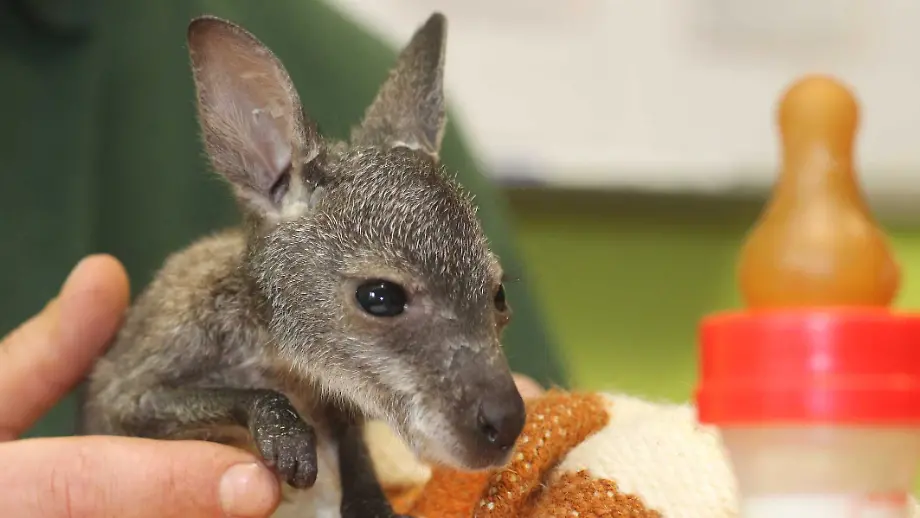 04.03.2016, 10:50 UhrIn freier Wildbahn wäre das sein Todesurteil gewesen: Ein Känguru-Baby fällt aus dem Beutel seiner Mutter und schafft es nicht, wieder hineinzuklettern. Zum Glück lebt die kleine "Muffin" in einem Tierpark in Sachsen-Anhalt. Nun kümmern sich Pfleger liebevoll um das Känguru-Mädchen und basteln ihm sogar einen Ersatzbeutel.