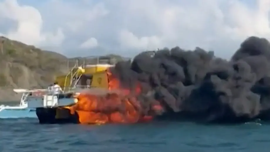 Touristen retten sich ins MeerKatamaran geht vor Kolumbien in Flammen auf