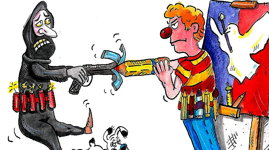 25.01.2015, 10:35 UhrDer islamistische Terror als Thema im Karneval - geht das? Diese Frage stellen sich Karnevalisten im Rheinland. Sie bereiten sich auf ihre Umzüge in gut drei Wochen vor. Einer der Wagen vom Kölner Karneval soll für die Pressefreiheit demonstrieren. Das Motiv: Der Jeck stoppt den Terroristen mit einem Buntstift. Ist das eine Provokation, die gefährliche Konsequenzen haben könnte?