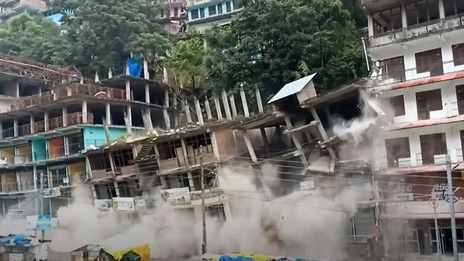 Waren bereits evakuiertKomplette indische Häuserzeile stürzt in die Tiefe