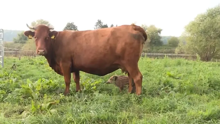 Kaum zu glauben, aber wahrKuhherde in Sachsen adoptiert verwaistes Ferkel