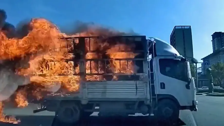 Kaum zu glauben, aber wahrLaster transportiert Brand zur Feuerwehr