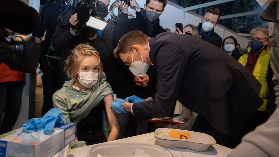 17.12.2021, 15:49 UhrGesundheitsminister Lauterbach warnt eindringlich vor der nahenden Entwicklung durch die Omikron-Ausbreitung. Impfen sei weiter das Gebot der Stunde. Bei einem Besuch in Hannover greift er kurzerhand selbst zur Spritze, impft zwei Kinder und adelt sie als "Biespiel für Erwachsene".