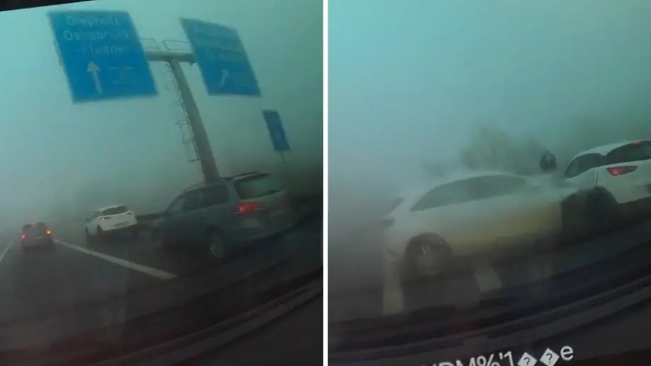 Plötzliche Karambolage gefilmtLeichtsinniges Manöver im Nebel: Übler Crash auf A33