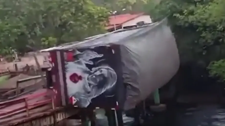 30.10.2025, 18:46 UhrIn Brasilien möchte ein schwer beladener Lkw eine Holzbrücke überqueren und kracht dabei seitlich in einen Fluss. Die Brücke ist schon länger baufällig, blieb aber trotzdem geöffnet. Der Fahrer wurde trotz des spektakulären Sturzes nur leicht verletzt.