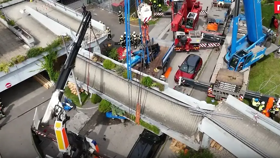 16.07.2025, 16:23 UhrIm österreichischen Linz kracht ein Lkw gegen eine Fußgängerbrücke, die daraufhin auf die Fahrerkabine stürzt. Erst nach Stunden können die beiden Insassen befreit werden. Sie werden schwer verletzt ins Krankenhaus gebracht.