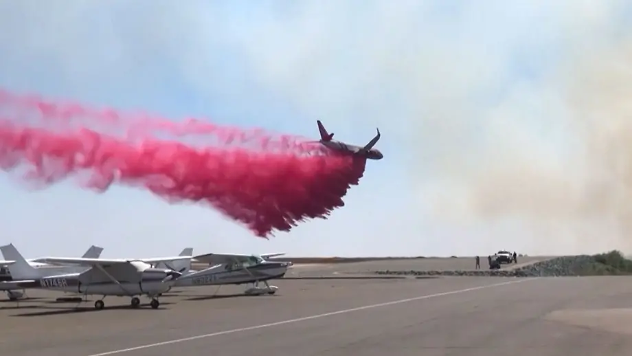 Feuer erreicht kalifornischen AirportLöschflieger werfen Ladung nur Meter neben Landebahn ab