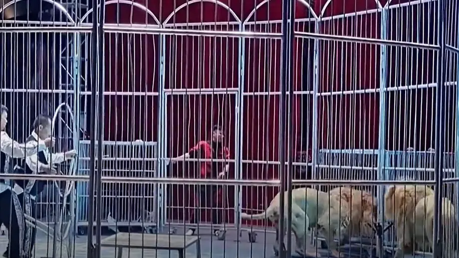 Dompteure verlieren KontrolleLöwen entkommen Zirkuskäfig - Zuschauer ergreifen Flucht