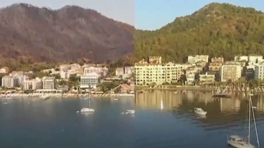 10.08.2021, 16:35 UhrDie bisherige Bilanz der Waldbrände in der Türkei ist verheerend: Mindestens acht Menschen sind tot, über 100.000 Hektar Wald vernichtet. Auch in der Region Mugla haben die Flammen eine Schneise der Verwüstung hinterlassen, wie Luftaufnahmen vor und nach den Bränden eindrucksvoll zeigen.