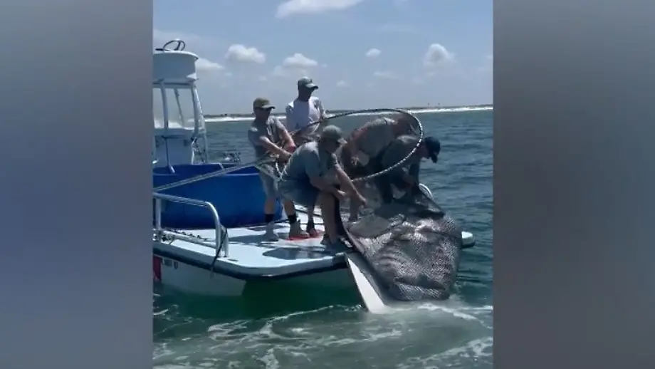 Von anderem Boot aus gefilmtMänner fangen streng geschützten Meeresriesen vor Florida