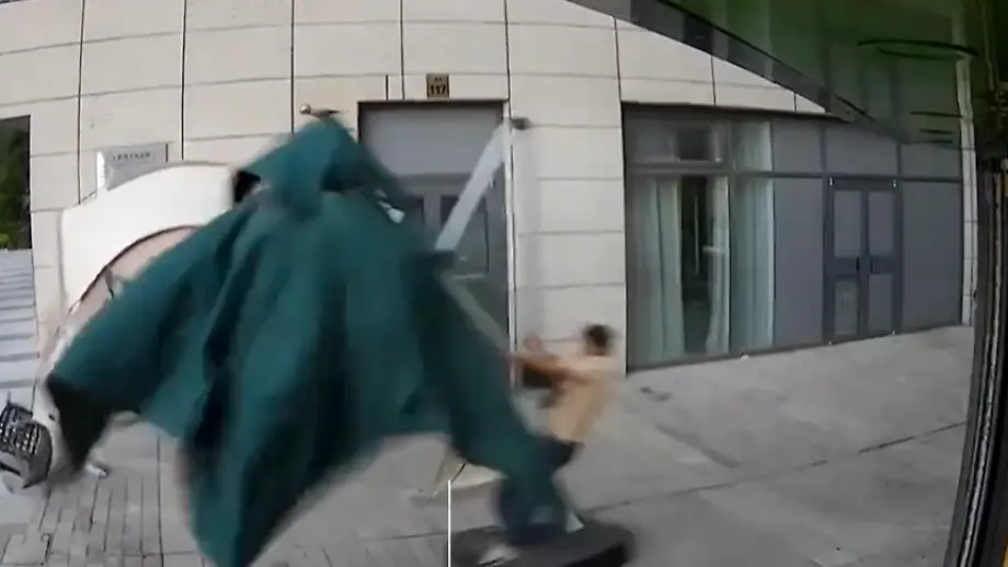 Kaum zu glauben, aber wahrMann surft per Sonnenschirm durch Fußgängerzone