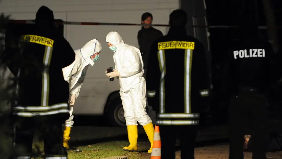 09.03.2012, 14:40 UhrGrausiger Fund in Recklinghausen: Ein etwa 20 Jahre alter Mann liegt mit eingeschlagenem Schädel tot auf einem Friedhofsweg. Die Polizei nimmt einen circa 18 Jahre alten Verdächtigen fest.