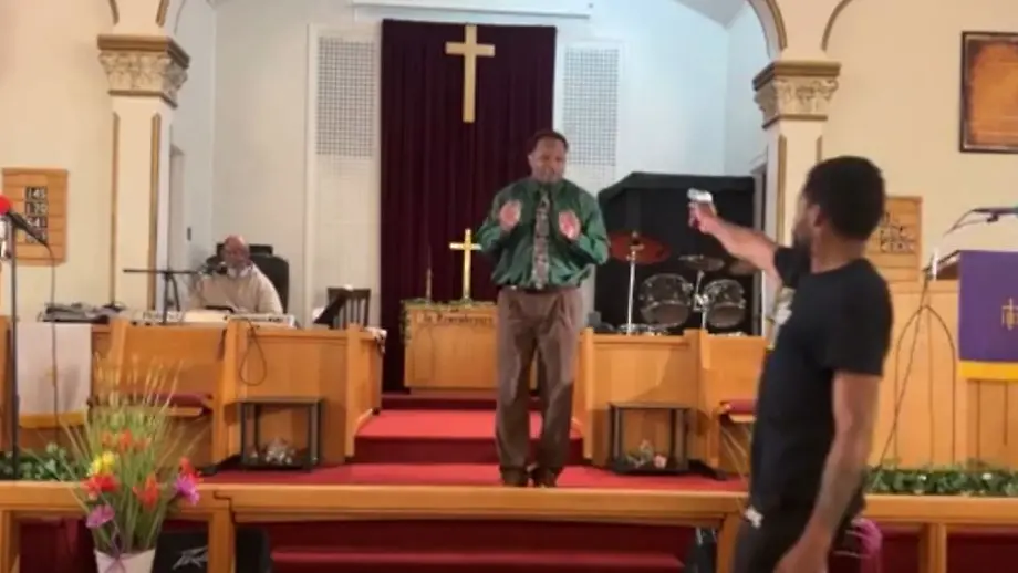 Besucher überwältigt AngreiferMann zielt während Predigt auf US-Pastor - Waffe klemmt