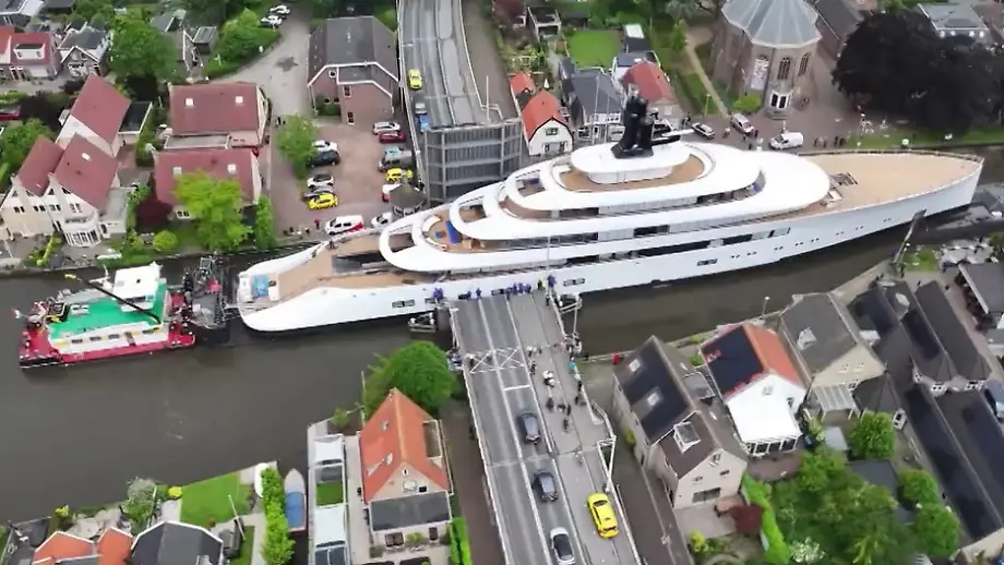 Millimeterarbeit mit MillionenschiffMega-Jacht zwängt sich haarscharf durch Wohngebiet