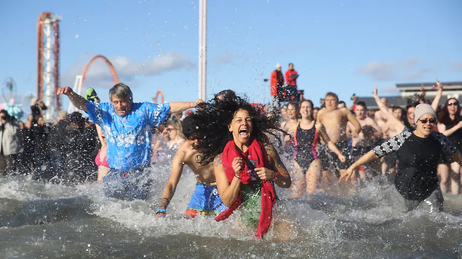 Frohes neues JahrMenschen stürzen sich weltweit ins eisige Nass