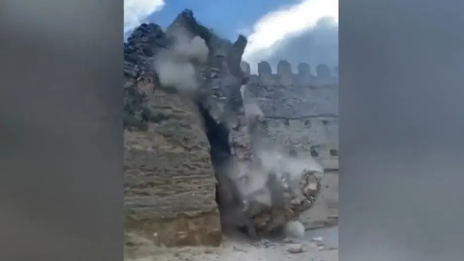 Unmittelbar vor BesucherführungHistorischer Burgturm in Spanien kracht zusammen