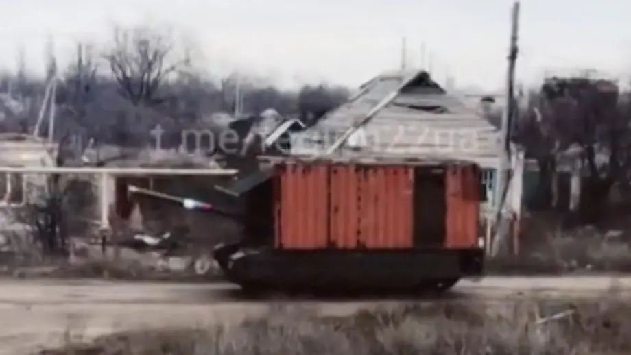 Frachtcontainer zweckentfremdetNeue abenteuerliche Panzer tauchen in der Ukraine auf