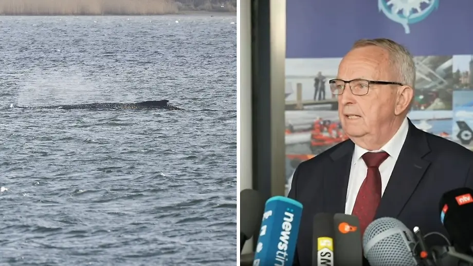 31.03.2026, 14:50 UhrMecklenburg-Vorpommerns Umweltminister Till Backhaus zeigt sich enttäuscht vom Buckelwal. Der Wal hätte "sich nicht an seine Route gehalten", obwohl er von Greenpeace-Booten begleitet wird. Der Buckelwal sei "rechts abgebogen" und sitze nun in der Kirchsee fest.