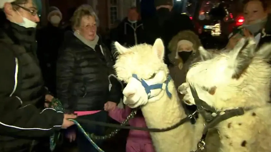 05.12.2021, 13:56 UhrDer Nikolaus präsentiert sich vor der Helios-Klinik in Berlin ungewöhnlich. Mit Traktoren und Alpakas reist die Delegation des Heiligen an. Geschenke werden aber traditionell an Groß und Klein verteilt. Die Kinder sind sichtlich erfreut.