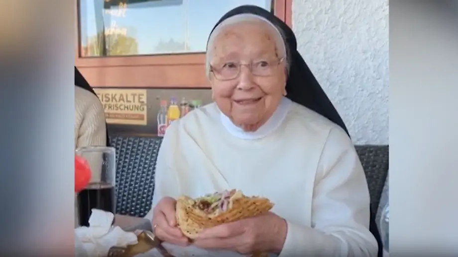 26.04.2026, 15:46 UhrNach einer Wallfahrt stillt eine Gruppe Ordensschwestern ihren Hunger in einem Dönerladen. Eine Premiere für Klosterschwester Irmingard: Sie isst den ersten Döner ihren Lebens - mit 92 Jahren. Und sie ist begeistert. Auch eine ihrer Kolleginnen hat die Imbiss-Aktion "hart gefeiert".