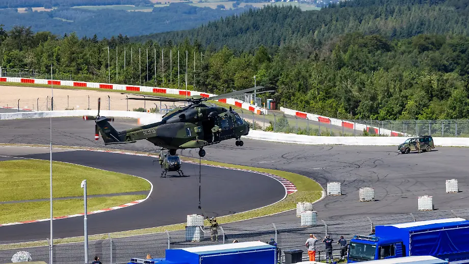 Hubschrauber fliegen ein und ausNürburgring wird zu riesigem Flut-Spendenlager
