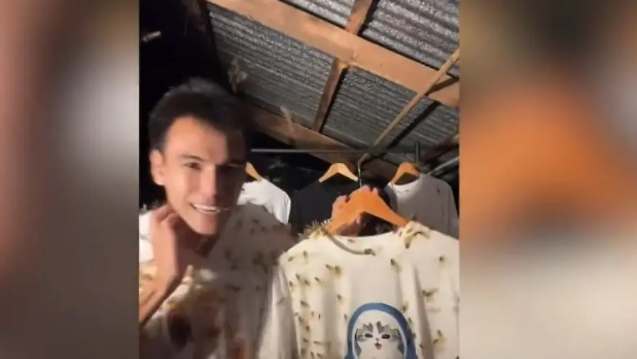 05.06.2024, 20:32 UhrEin Thailänder will eigentlich nur seine T-Shirts übers Netz verkaufen. Doch in seinen Video-Clip fliegen Hunderte Motten, belagern ihn und seine Kleidung. Der Verkäufer nimmt's mit Humor - und greift zu einem ungewöhnlichen Mittel.