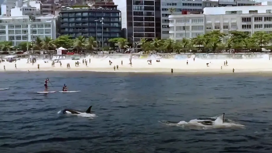 Ungewöhnlich nahOrca-Gruppe verzaubert Besucher am Strand von Ipanema