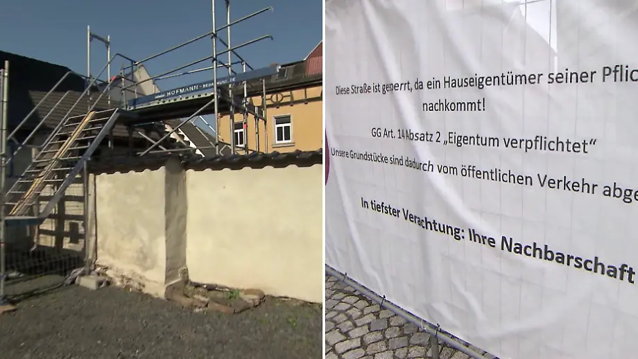 06.04.2026, 19:23 UhrWeil ein Nachbarhaus einzustürzen droht, kommt eine Familie aus Weida in Thüringen nur noch über ein Gerüst in ihr eigenes Zuhause. Die Straße ist gesperrt, Behörden verweisen auf Fristen. Für den gehbehinderten Hausherrn und seine Frau wird der Alltag zur Belastung - und ein Ende ist nicht in Sicht.