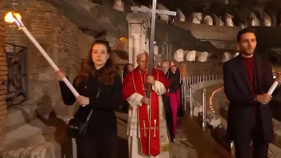 Erstes Osterfest als PontifexPapst Leo "trägt die ganze Kirche" durch das Kolosseum