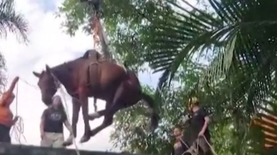 Kuriose Aktion in BrasilienPferd auf Dach gefangen - Kran rückt an