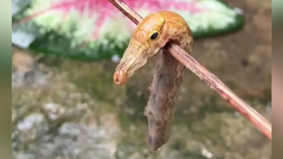 05.02.2026, 20:59 UhrBei der Gartenarbeit auf den Philippinen stößt eine Frau auf ein fremdartiges Tier. Zunächst glaubt sie, es handle sich um eine junge Schlange. Doch bei genauerem Hinsehen stellt sie fest, der Eindruck täuscht: Die Kreatur frisst Blätter und beschädigt Pflanzen.