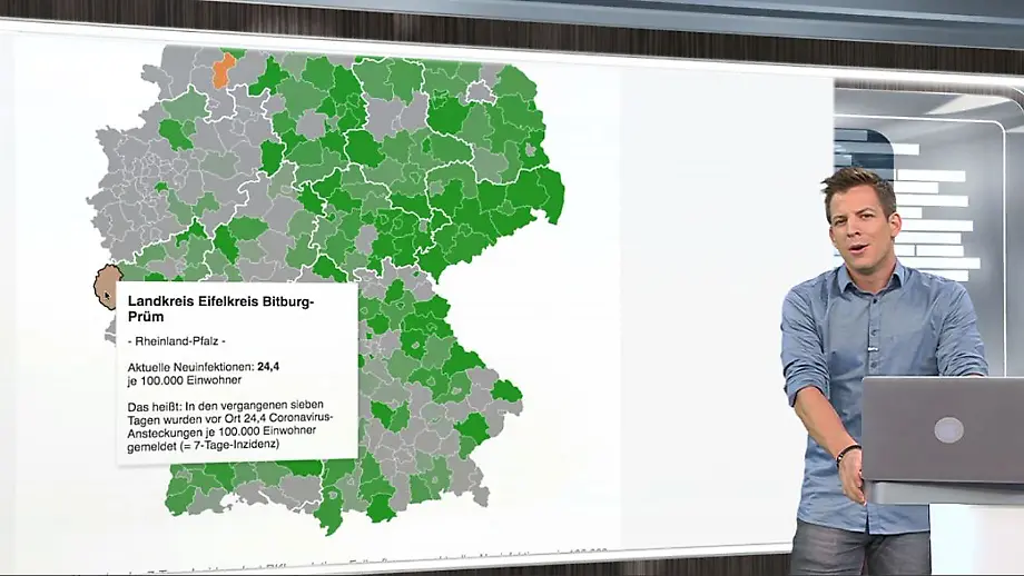 23.07.2020, 11:33 UhrWie hat sich die tägliche Neuinfektions-Zahl entwickelt? Wo gibt es Infektionsherde? Mit aktuellen Fakten zum Infektionsgeschehen ordnen die ntv-Moderatoren Daniel Schüler und Doro Steitz mit dem Landrat Eifelkreis Bitburg-Prüm Joachim Streit die Corona-Lage ein.