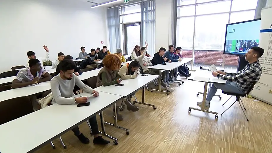 20.03.2023, 20:18 UhrUm dem Fachkräftemangel entgegenzusteuern, setzt die Ampelregierung auch auf Zuwanderung. Doch Sprachbarriere und Bürokratie machen es jungen Geflüchteten oft schwer. Wie ein guter Übergang gelingt, zeigt das Projekt "Kompass D": Die Kooperation von 20 Unternehmen hilft beim Berufseinstieg.