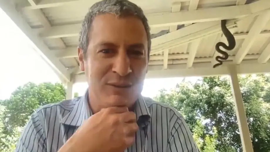 Kaum zu glauben, aber wahrPython baumelt plötzlich vor laufender Kamera in Podcast