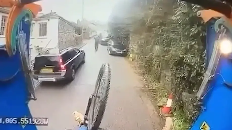 Kaum zu glauben, aber wahrRadfahrer bleibt nach Müllauto-Crash in Abfall stecken