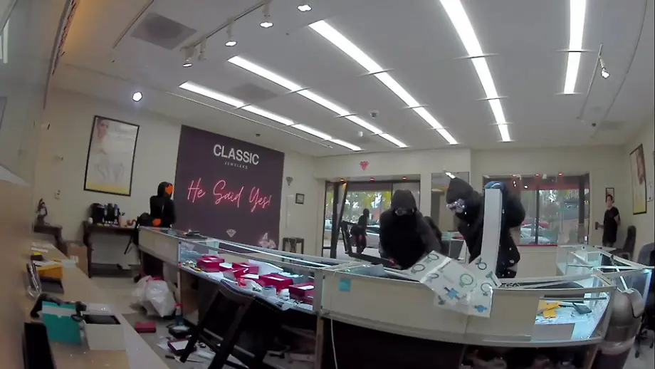 28.01.2026, 07:25 UhrEin Raubüberfall hat ein Juweliergeschäft in Kalifornien erschüttert. Maskierte Täter rammten mit einem Fahrzeug den Eingangsbereich des Geschäfts und plünderten innerhalb weniger Minuten mehrere Schmuckvitrinen. Videoaufnahmen dokumentieren den dreisten Coup.