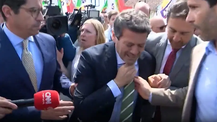 16.05.2025, 20:21 UhrAuf einer Wahlkampfveranstaltung kollabiert der Parteichef der rechtsextremen Partei Chega in Portugal angeblich wegen eines Speiseröhrenkrampfes. Erst 48 Stunden zuvor sackt André Ventura bei einer Kundgebung mit Brustschmerzen zusammen.