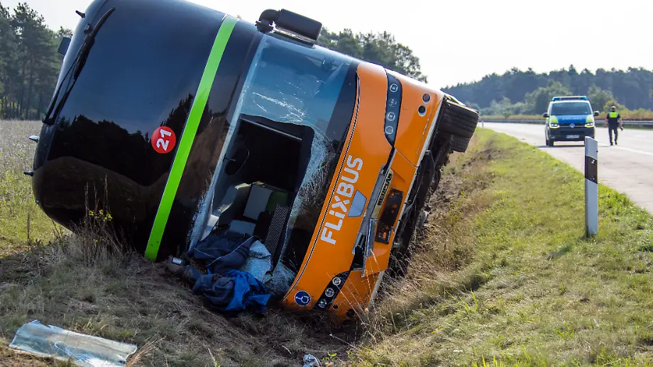 12.09.2020, 13:01 UhrAuf der Autobahn 24 kommt ein Fernreisebus von der Fahrbahn ab und fährt in den Graben. Dabei werden 31 Menschen verletzt, drei davon schwer. Die Ursache ist noch unklar, die Polizei vermutet Sekundenschlaf als Auslöser.