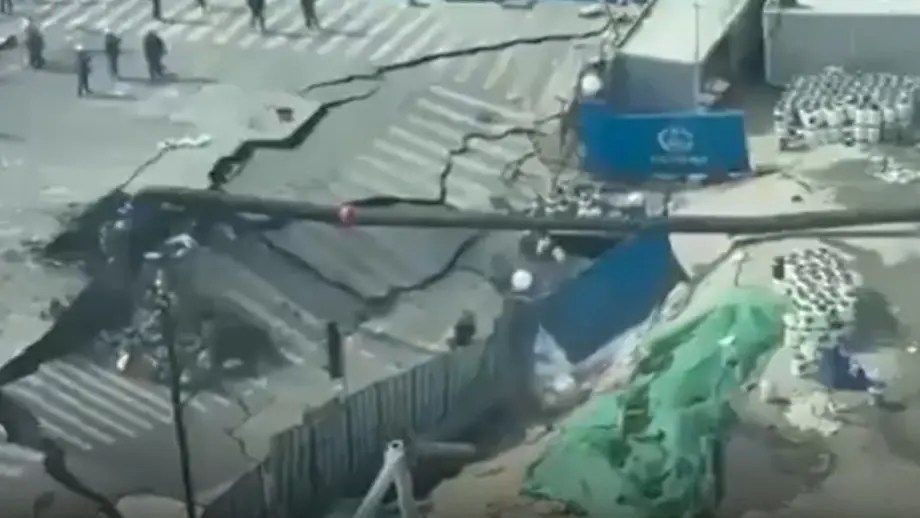 Schock-Moment in ShanghaiRiesiges Erdloch reißt Baustelle plötzlich in die Tiefe