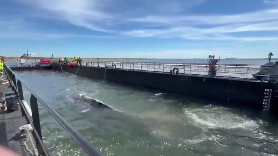 29.04.2026, 07:14 UhrSchon seit Wochen versuchen Helfer den in der Ostsee gestrandeten Buckelwal zu retten. Jetzt könnte der entscheidende Moment gekommen sein. In einer riesigen Barge, die der Schlepper namens "Robin Hood" zieht, ist der Wal nun unterwegs Richtung Atlantik. Jetzt muss das Tier noch die lange Reise überstehen und sich danach im offenen Meer zurechtfinden.