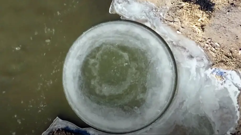 Perfekter Naturkreis in ChinaRotierendes Eis-Phänomen lockt Schaulustige