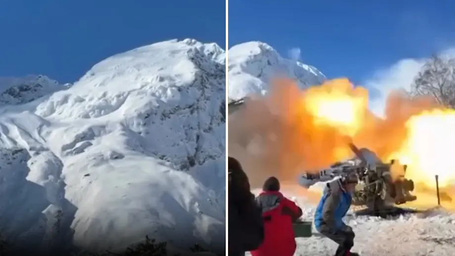 Alte Methode, spektakulärer EffektRussen schießen mit Weltkriegs-Geschütz riesige Lawine los