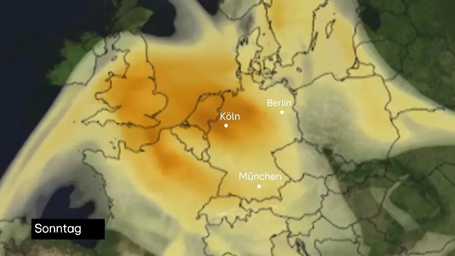 06.03.2026, 19:16 UhrIn vielen Teilen Deutschlands wird die Sonne am Wochenende nur noch durch einen roten Schleier aus feinem Sand zu sehen sein. Dieses Staubband hat tausende Kilometer hinter sich - es kommt nämlich aus der Sahara.