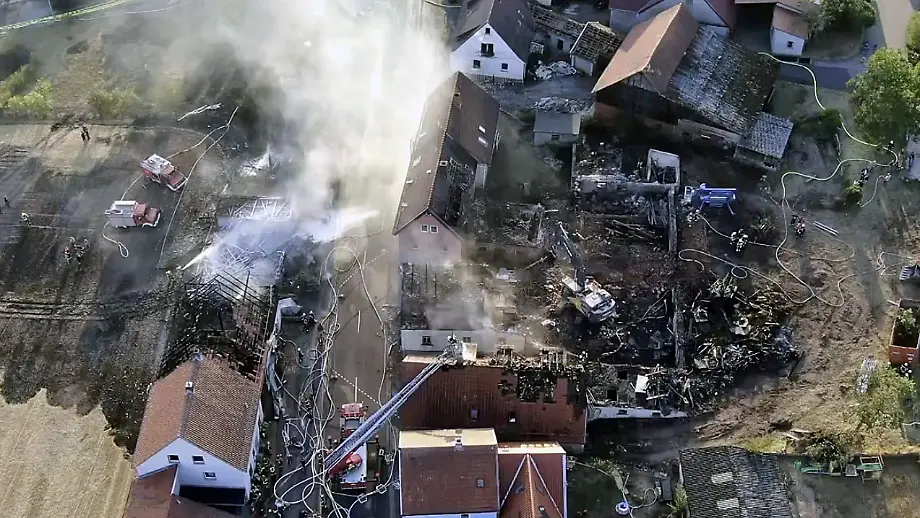 Verheerendes Feuer in BayernScheunen-Brand erfasst rasant halbes Dutzend Häuser
