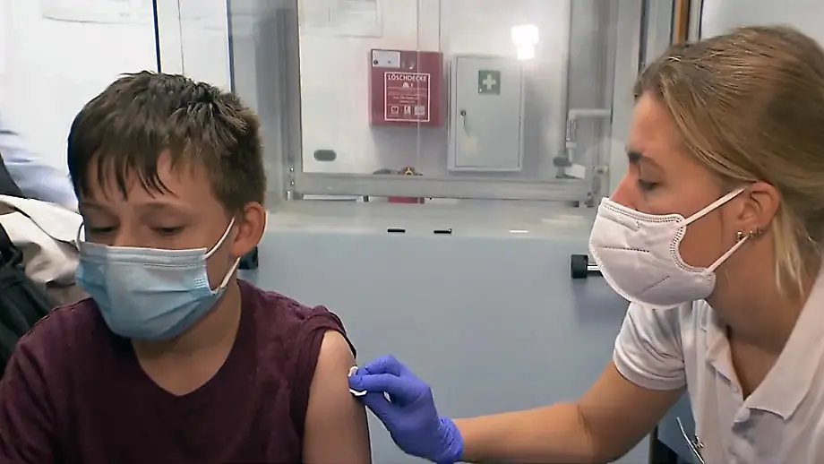 19.08.2021, 18:03 UhrNach monatelangen Diskussionen um das Für und Wider startet örtlich nun die Impfung von Kindern und Jugendlichen. In Schleswig-Holstein können sich Schüler und Schülerinnen durch mobile Impf-Teams den Piks abholen. Der Andrang ist groß.
